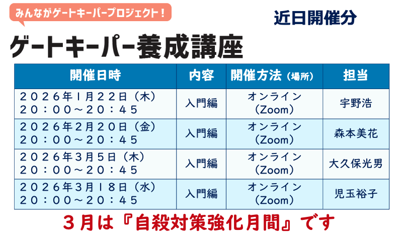 ”あなたが隣の誰かのゲートキーパーになりますように” ”隣の誰かがあなたのゲートキーパーになりますように”